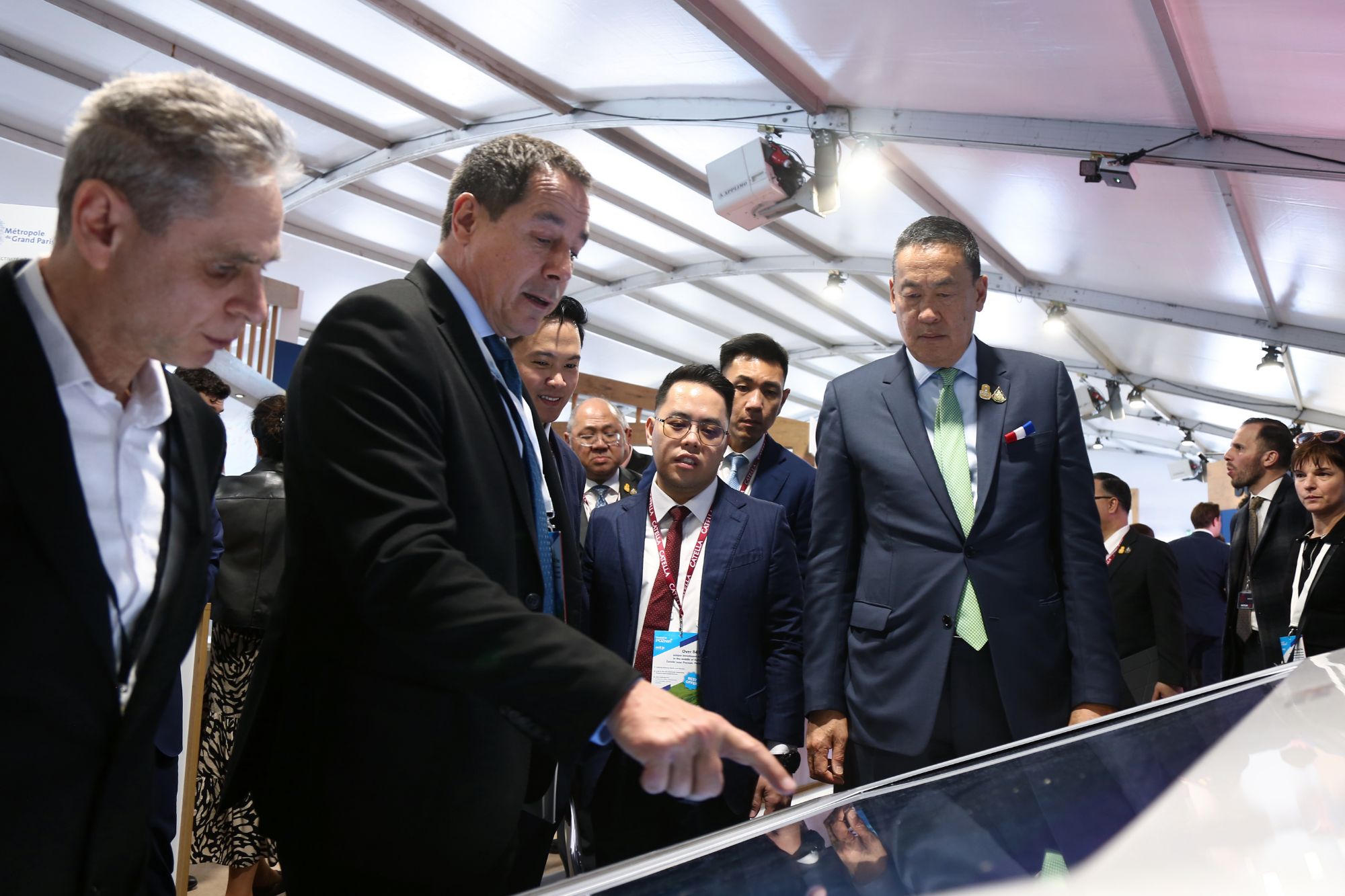Avec 36 hectares de foncier disponible et plus de 36 000 mètres carrés de bureaux neufs immédiatement disponibles, dont 32 % destinés à la vente ou à la location, Val d'Europe a suscité un vif intérêt parmi les visiteurs dont la présence du Premier ministre thaïlandais, Srettha Thavisin venu découvrir les atouts économiques du territoire à travers une carte interactive et immersive.